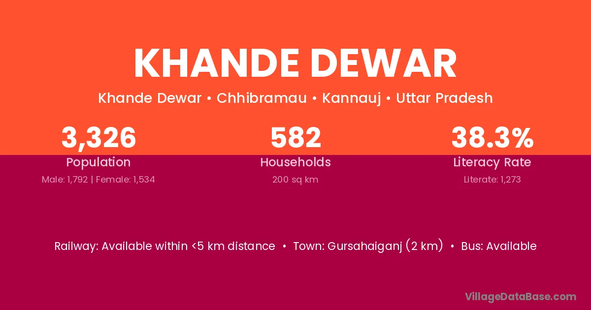 Gursahaiganj (2 km) is the nearest town to Khande Dewar village for major economic activities and is located approximately 2 km away.