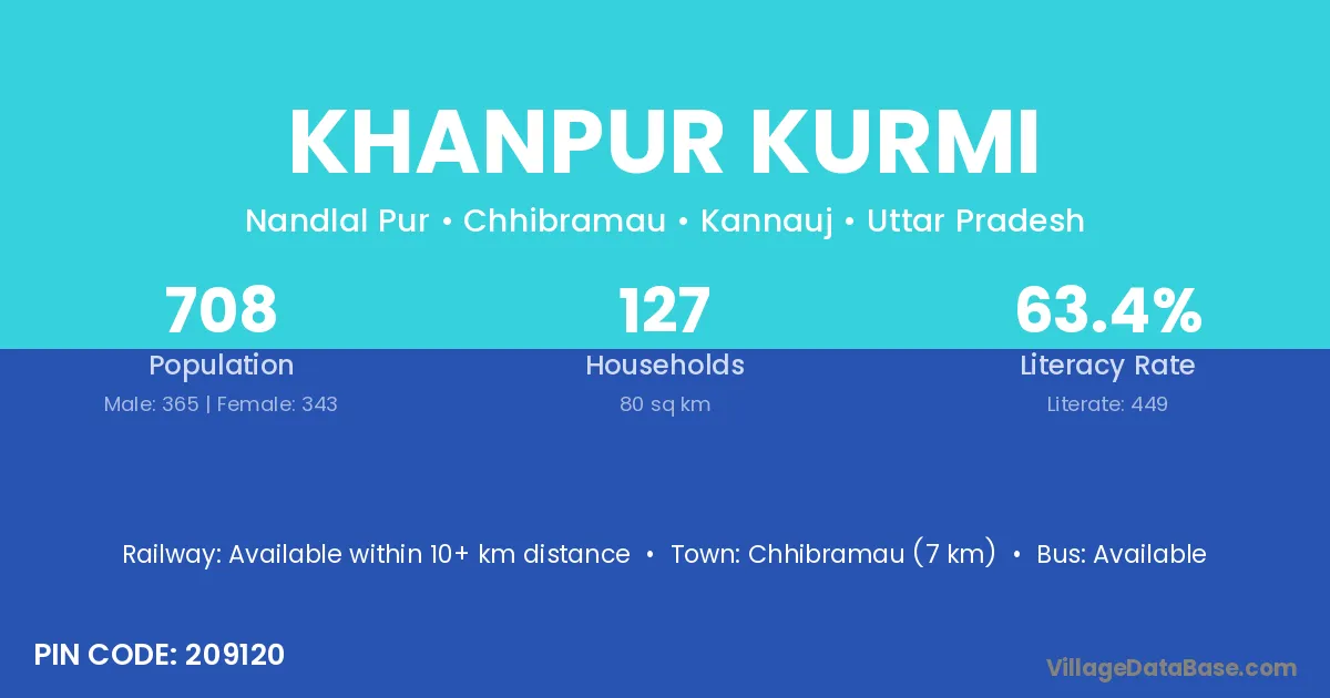 Chhibramau (7 km) is the nearest town to Khanpur Kurmi village for major economic activities and is located approximately 7 km away.