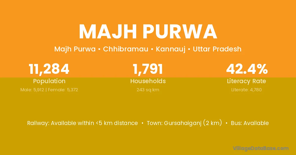 Gursahaiganj (2 km) is the nearest town to Majh Purwa village for major economic activities and is located approximately 2 km away.