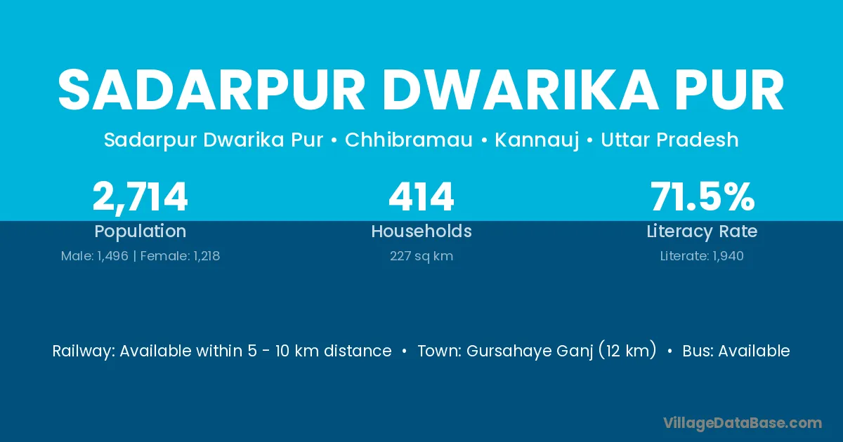 Gursahaye Ganj (12 km) is the nearest town to Sadarpur Dwarika Pur village for major economic activities and is located approximately 12 km away.