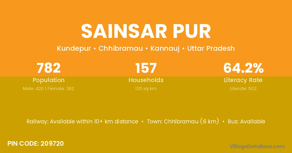 Chhibramau (6 km) is the nearest town to Sainsar Pur village for major economic activities and is located approximately 6 km away.