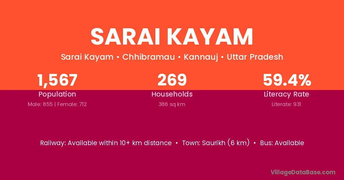 Saurikh (6 km) is the nearest town to Sarai Kayam village for major economic activities and is located approximately 6 km away.