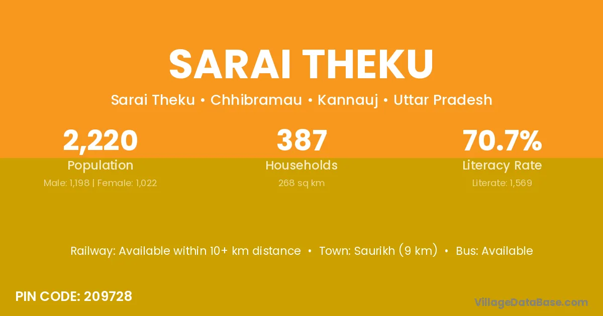 Saurikh (9 km) is the nearest town to Sarai Theku village for major economic activities and is located approximately 9 km away.