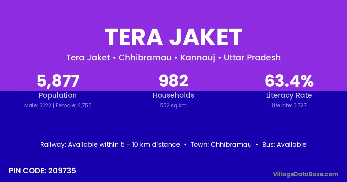 Chhibramau is the nearest town to Tera Jaket village for major economic activities
