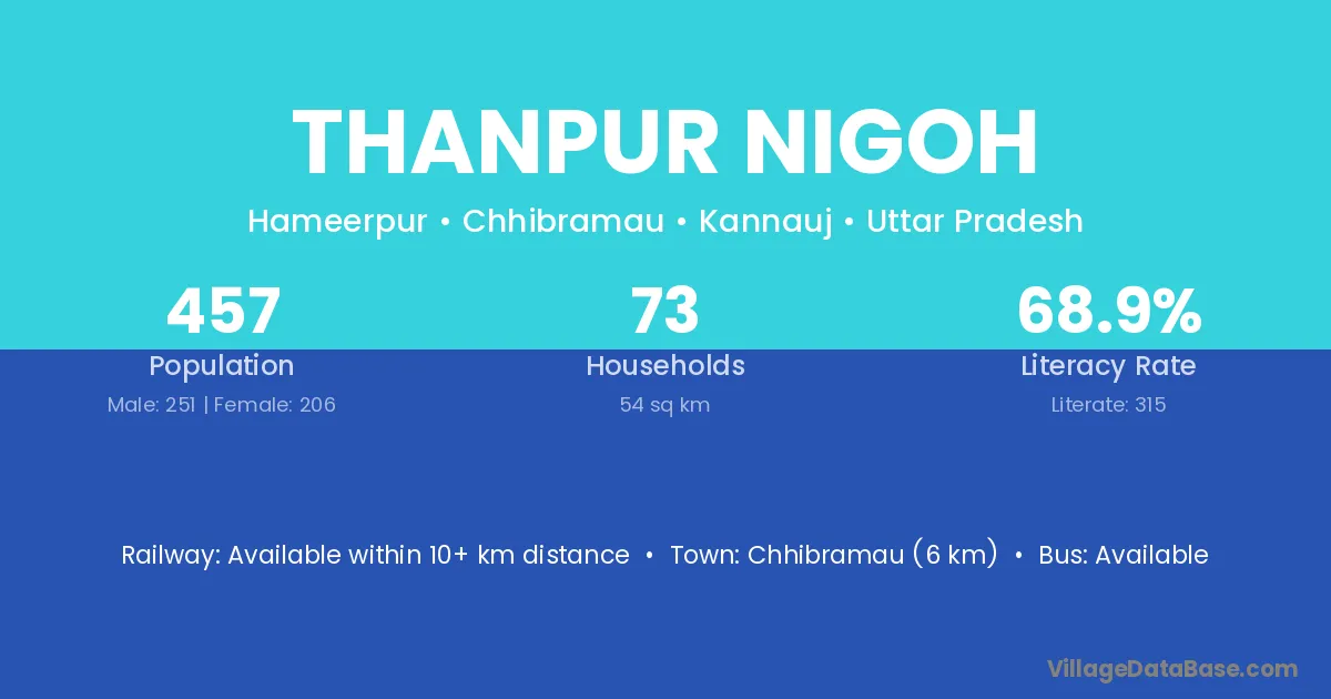 Chhibramau (6 km) is the nearest town to Thanpur Nigoh village for major economic activities and is located approximately 6 km away.