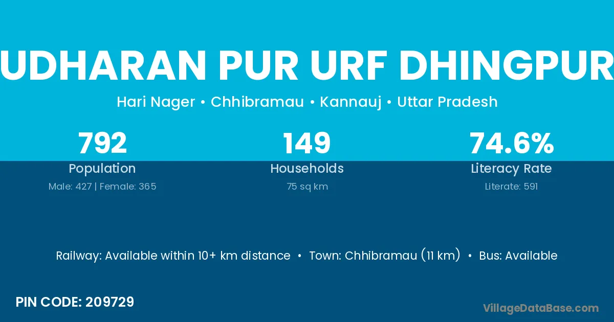 Chhibramau (11 km) is the nearest town to Udharan Pur Urf Dhingpur village for major economic activities and is located approximately 11 km away.