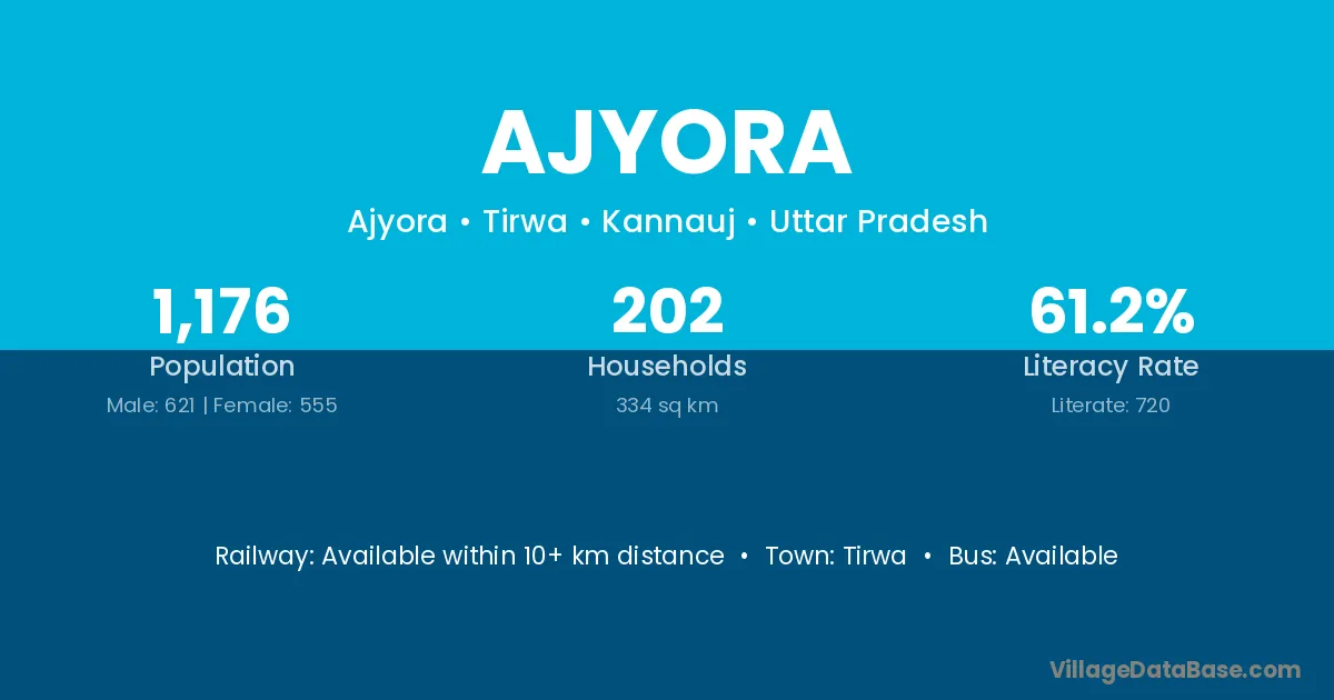 Ajyora village has a total population of 1,176 people, of which 621 are males and 555 are females.