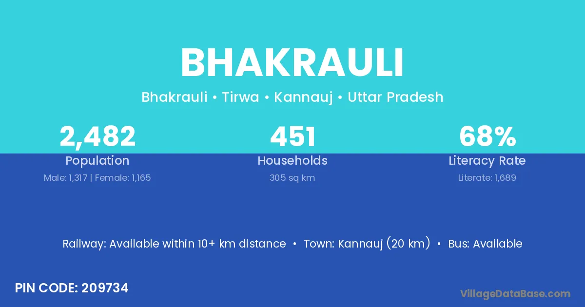 Kannauj (20 km) is the nearest town to Bhakrauli village for major economic activities and is located approximately 20 km away.
