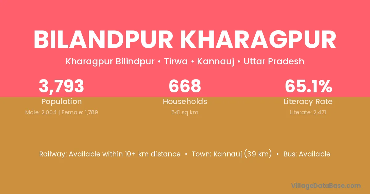 Kannauj (39 km) is the nearest town to Bilandpur Kharagpur village for major economic activities and is located approximately 39 km away.