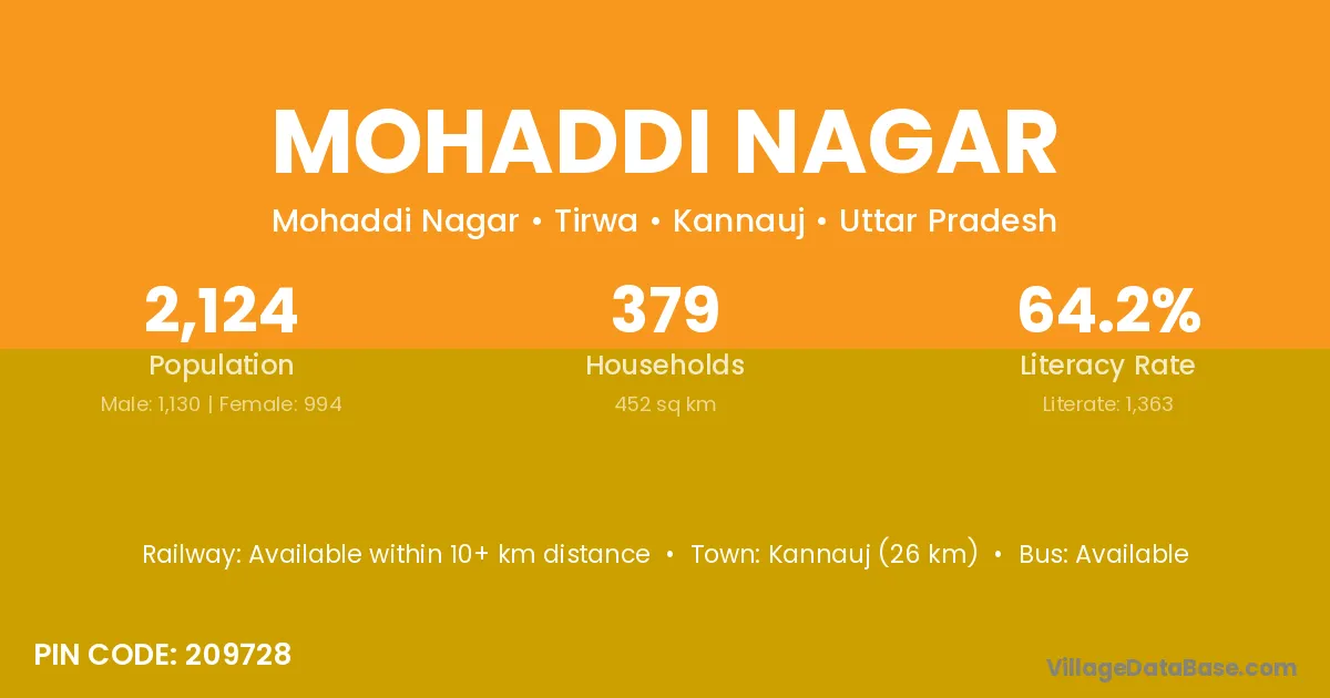 Kannauj (26 km) is the nearest town to Mohaddi Nagar village for major economic activities and is located approximately 26 km away.