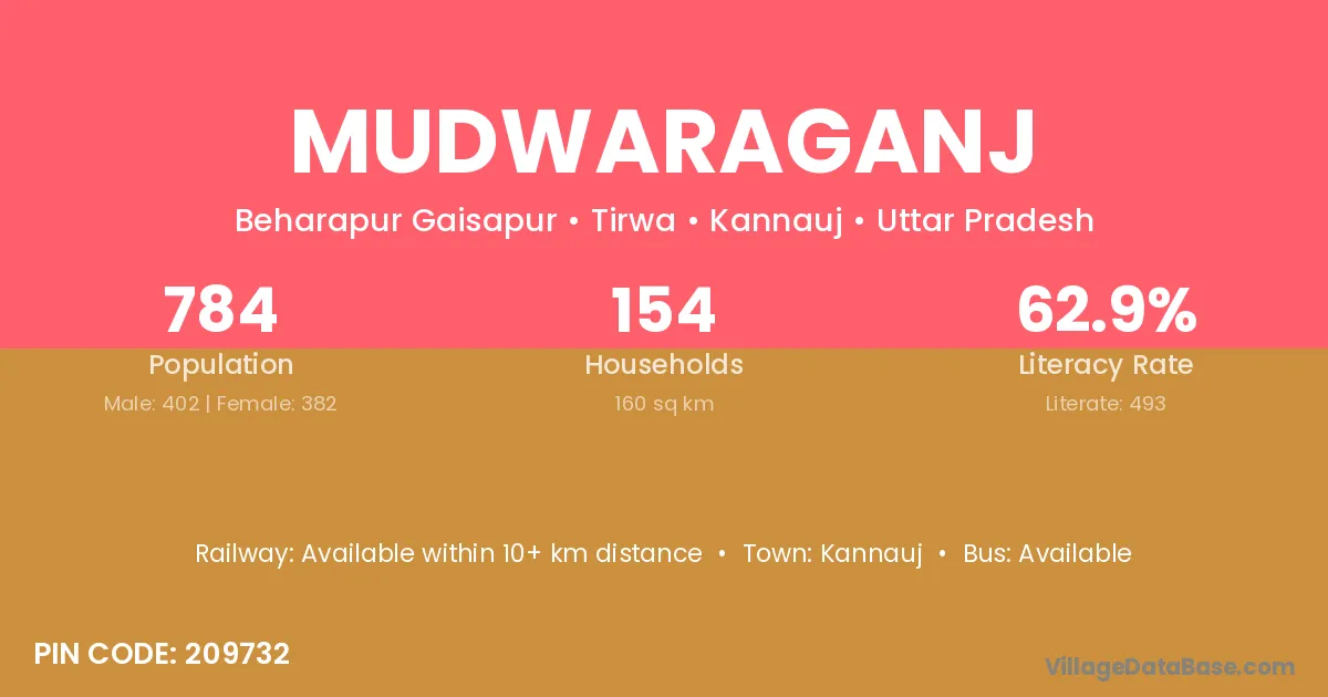 Kannauj is the nearest town to Mudwaraganj village for major economic activities