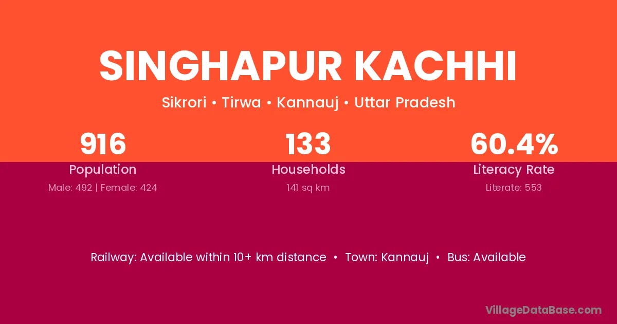 Singhapur Kachhi village has a total population of 916 people, of which 492 are males and 424 are females.