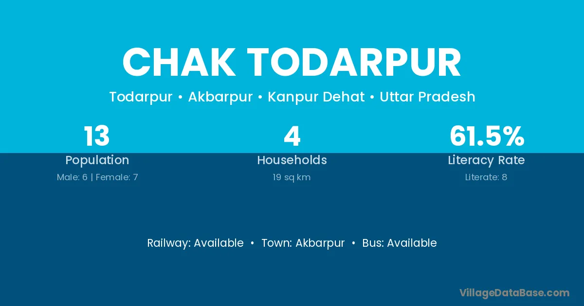 Chak Todarpur village has a total population of 13 people, of which 6 are males and 7 are females.