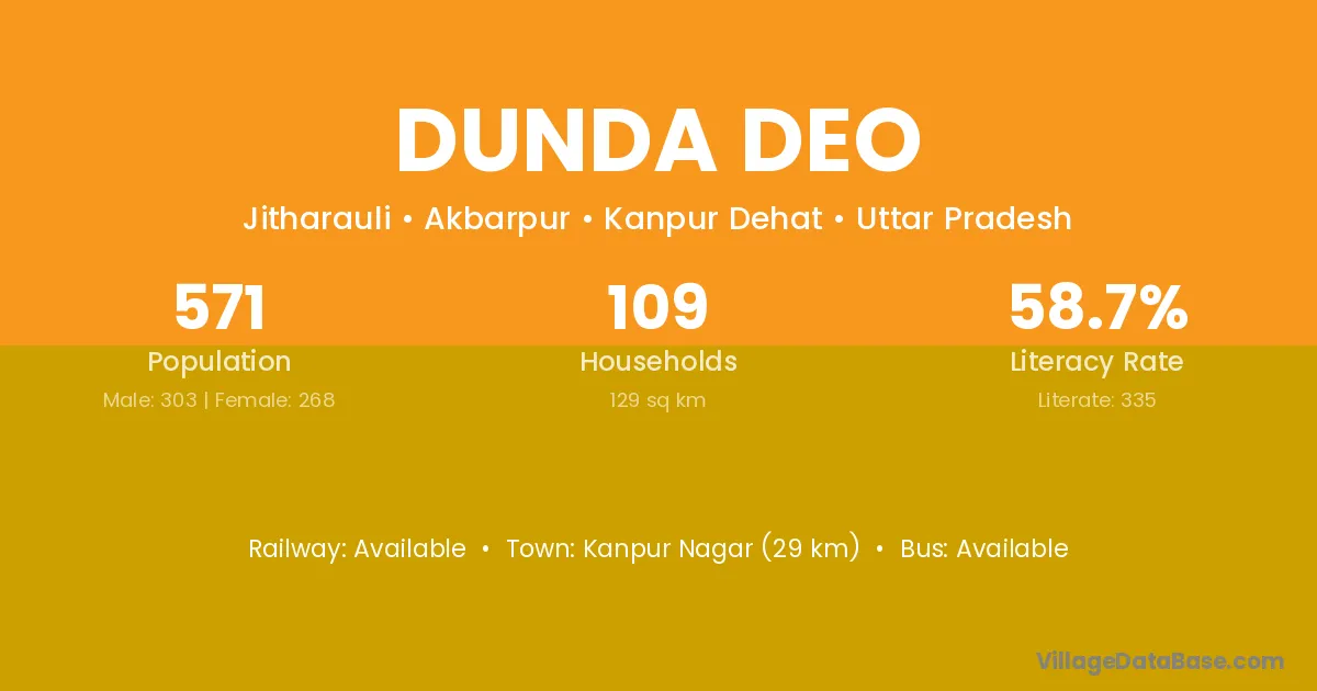 Kanpur Nagar (29 km) is the nearest town to Dunda Deo village for major economic activities and is located approximately 29 km away.