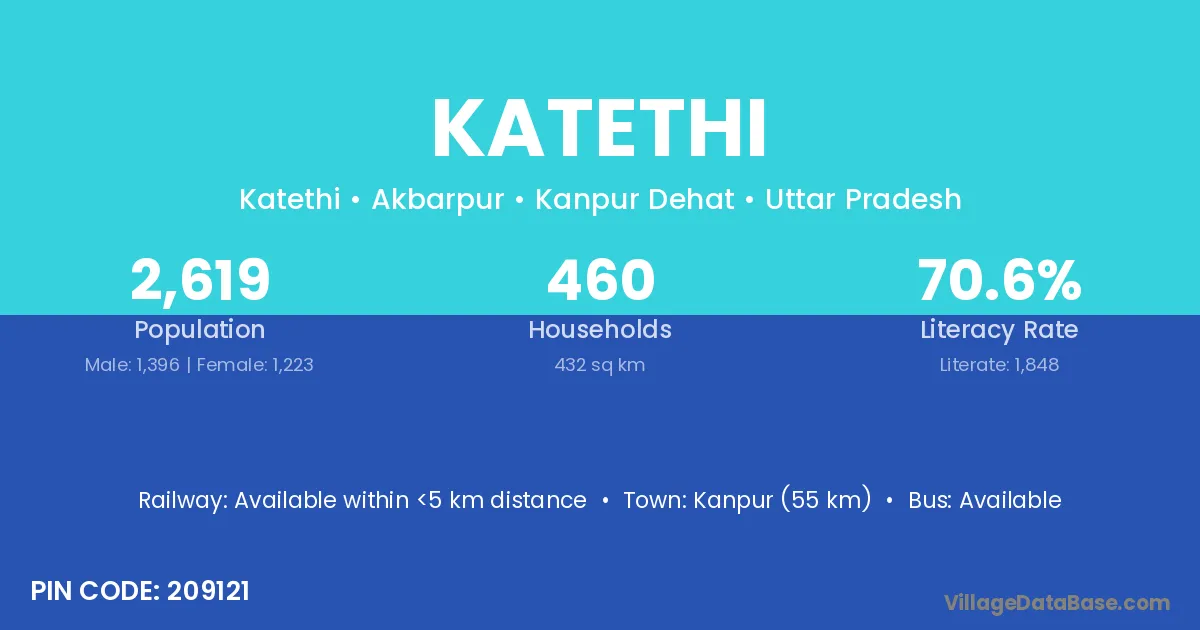 Kanpur (55 km) is the nearest town to Katethi village for major economic activities and is located approximately 55 km away.