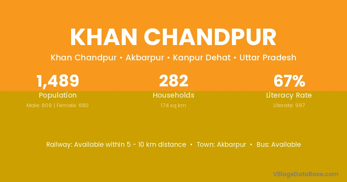 Khan Chandpur village has a total population of 1,489 people, of which 809 are males and 680 are females.