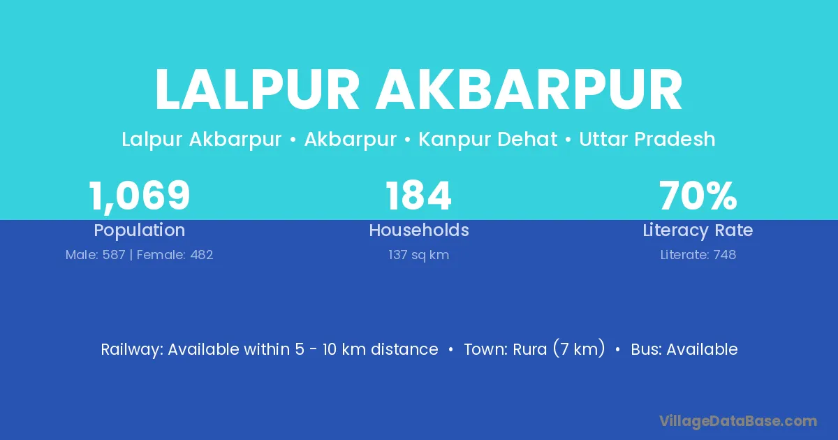 Rura (7 km) is the nearest town to Lalpur Akbarpur village for major economic activities and is located approximately 7 km away.