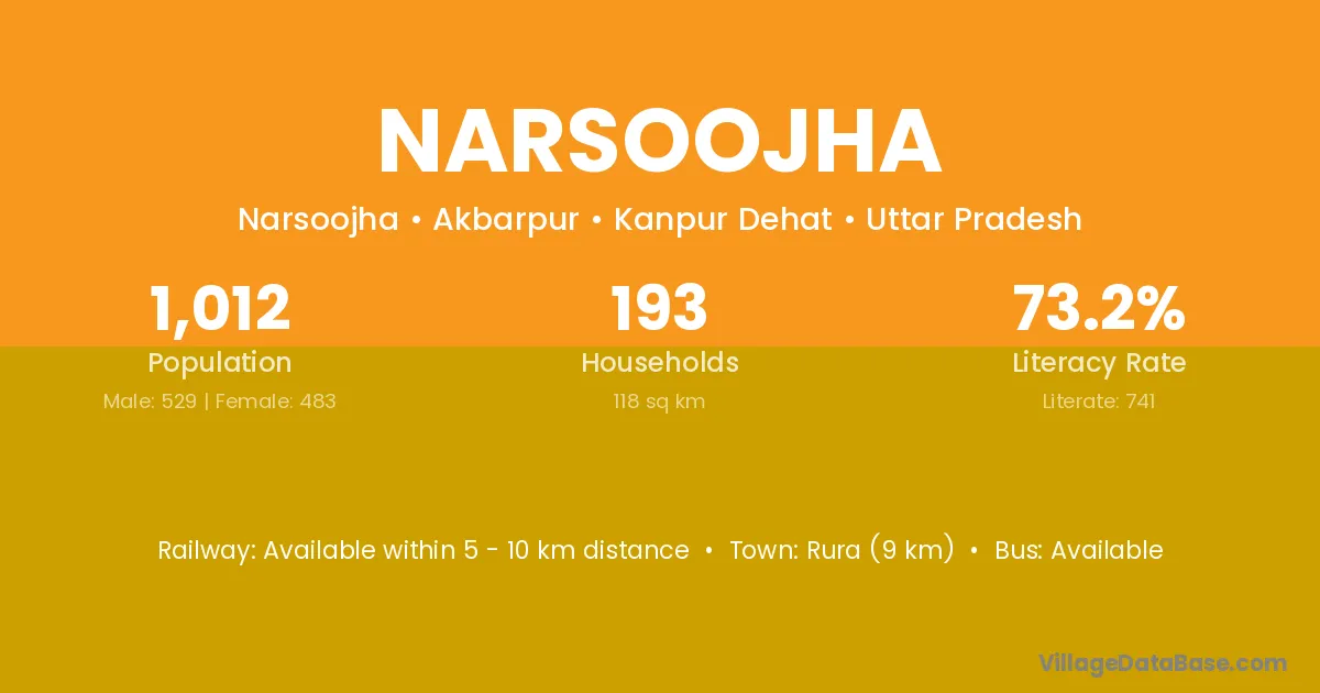 Rura (9 km) is the nearest town to Narsoojha village for major economic activities and is located approximately 9 km away.