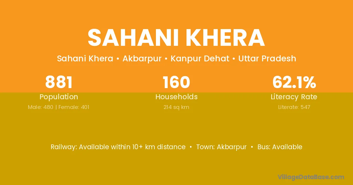 Sahani Khera village has a total population of 881 people, of which 480 are males and 401 are females.