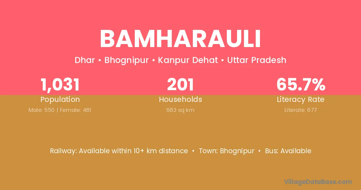 Bamharauli village has a total population of 1,031 people, of which 550 are males and 481 are females.