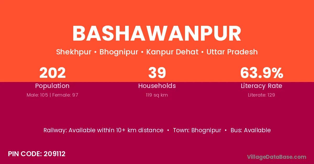 Bashawanpur village has a total population of 202 people, of which 105 are males and 97 are females.