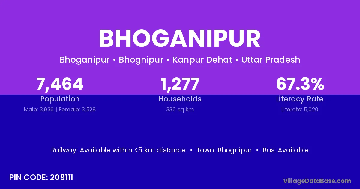 Bhoganipur village has a total population of 7,464 people, of which 3,936 are males and 3,528 are females.