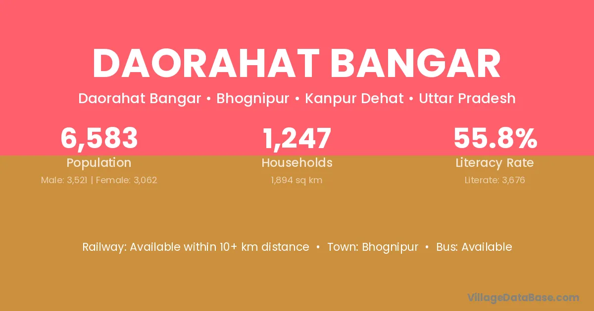 Daorahat Bangar village has a total population of 6,583 people, of which 3,521 are males and 3,062 are females.