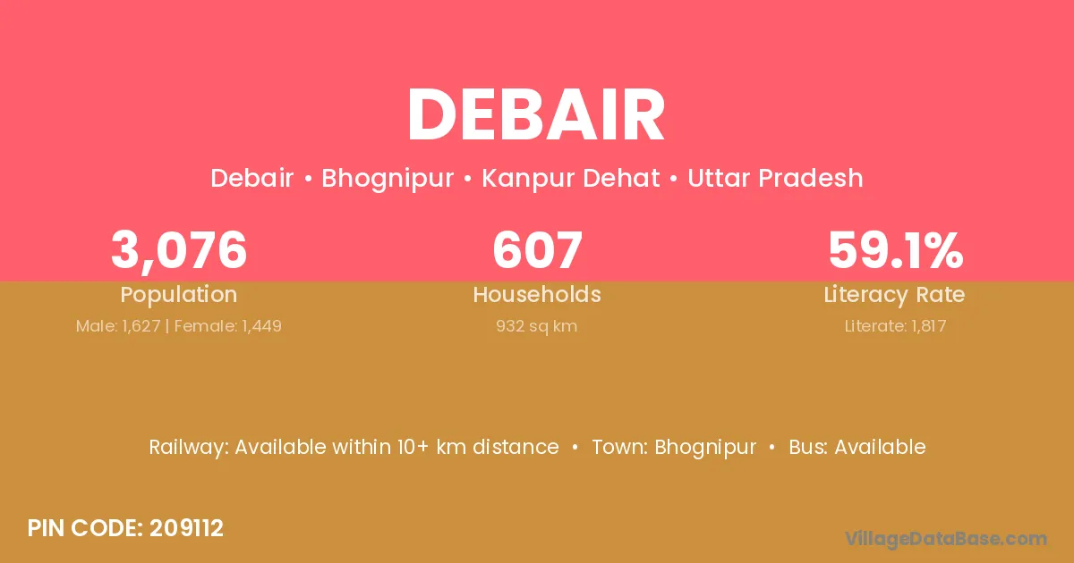 Debair village is located in the Bhognipur Tehsil of the Kanpur Dehat district in Uttar Pradesh .