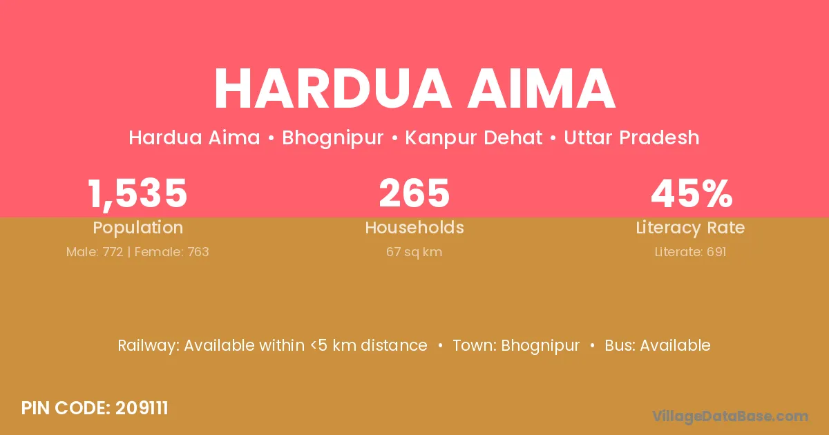 Hardua Aima village has a total population of 1,535 people, of which 772 are males and 763 are females.