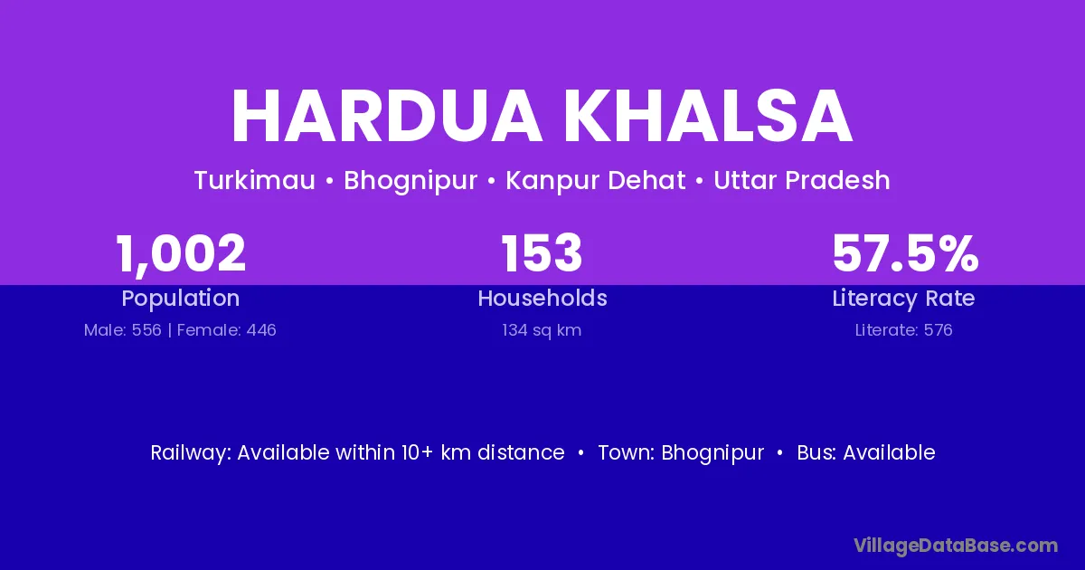 Hardua Khalsa village has a total population of 1,002 people, of which 556 are males and 446 are females.