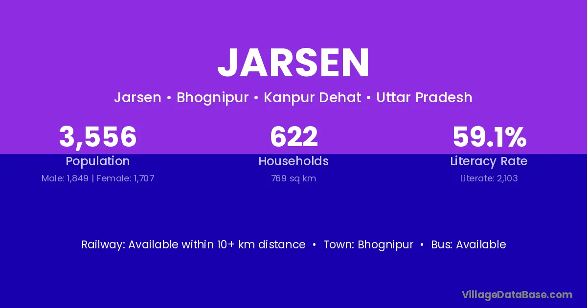 Jarsen village is located in the Bhognipur Tehsil of the Kanpur Dehat district in Uttar Pradesh .
