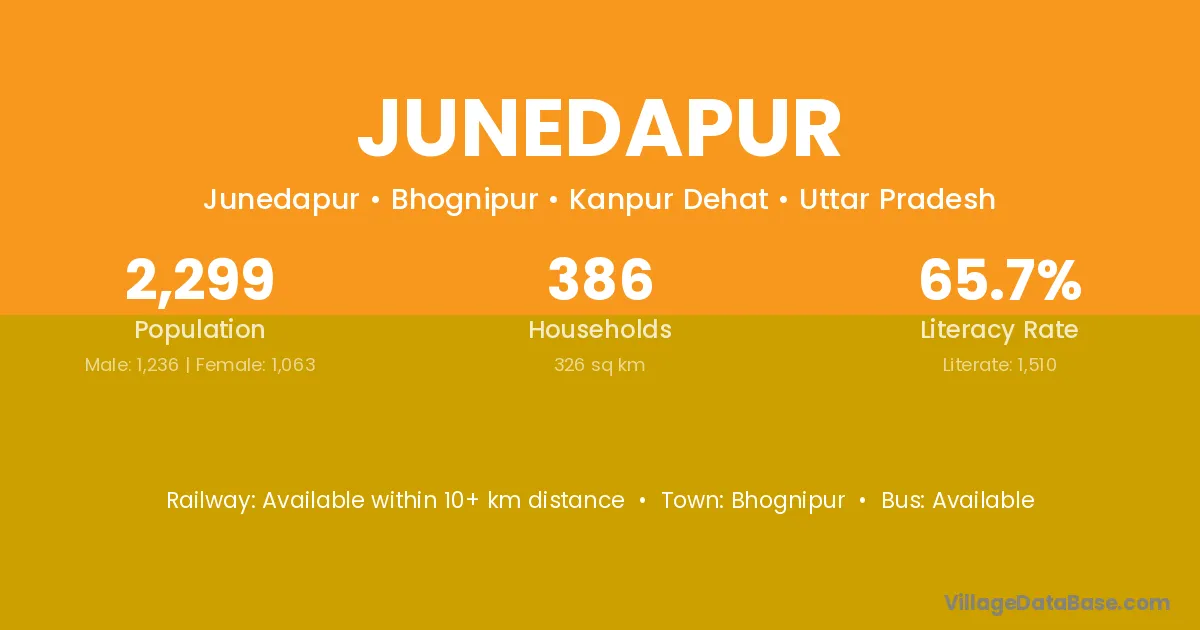 Junedapur village has a total population of 2,299 people, of which 1,236 are males and 1,063 are females.