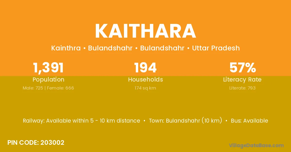 Kaithara village has a total population of 361 people, of which 194 are males and 167 are females.