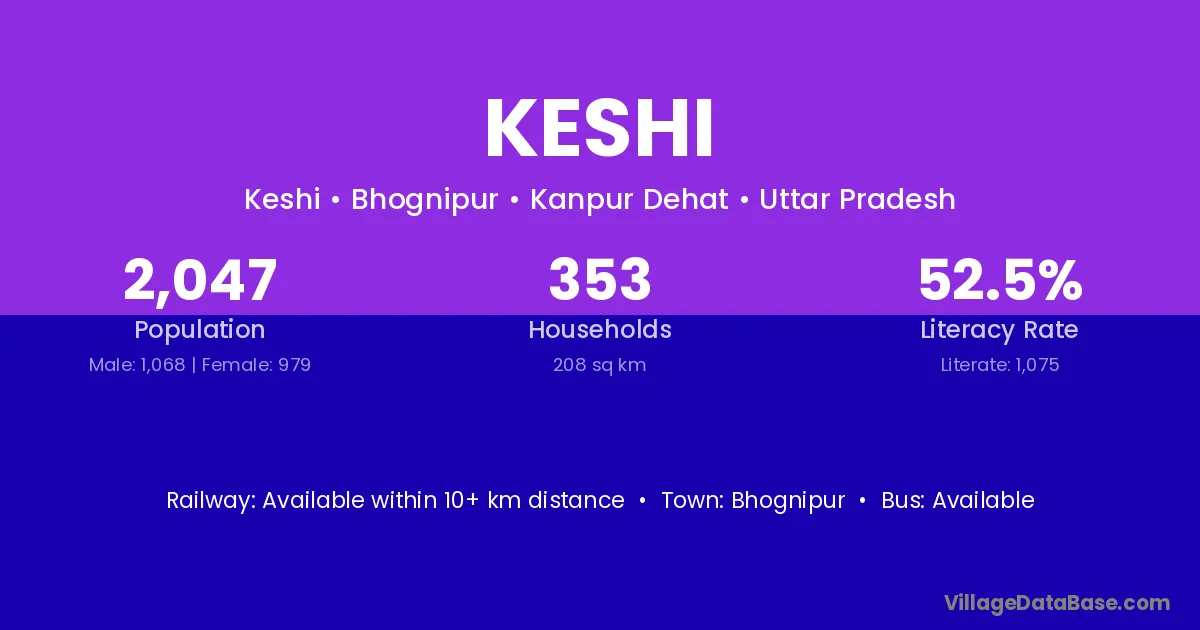 Keshi village is located in the Bhognipur Tehsil of the Kanpur Dehat district in Uttar Pradesh .