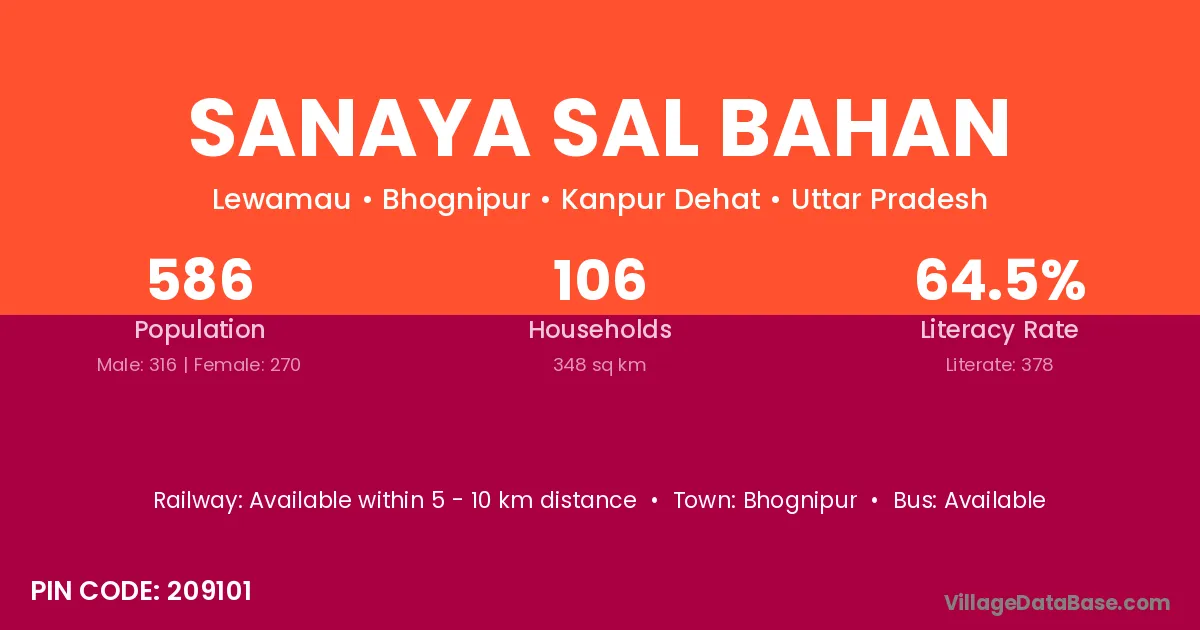 Sanaya Sal Bahan village has a total population of 586 people, of which 316 are males and 270 are females.