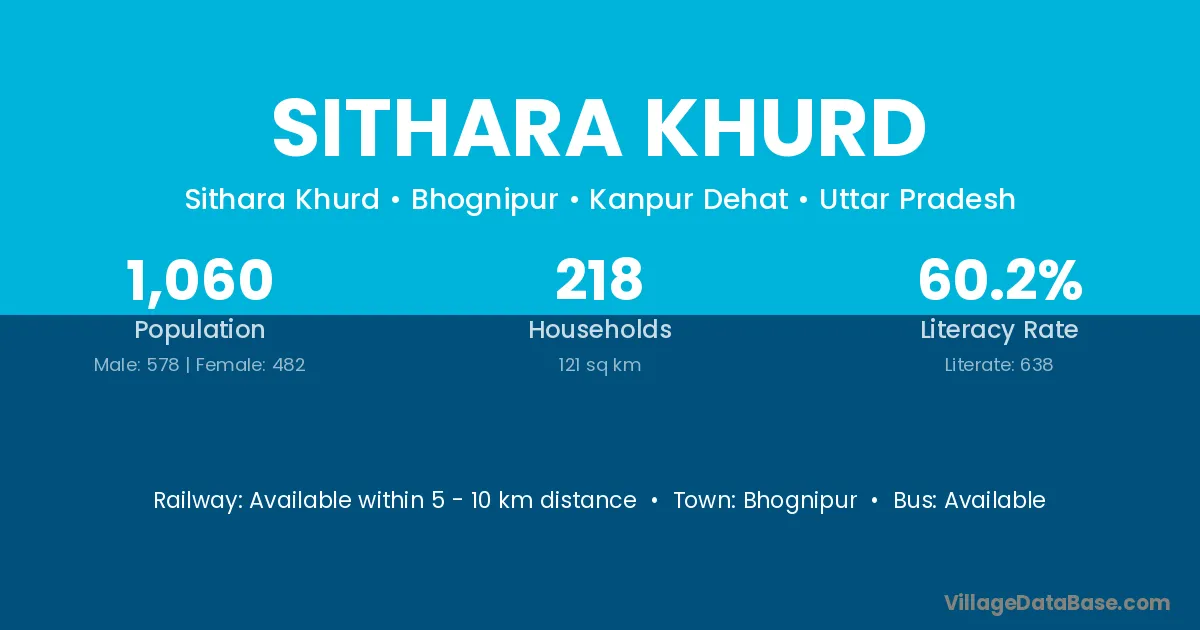 Sithara Khurd village has a total population of 1,060 people, of which 578 are males and 482 are females.