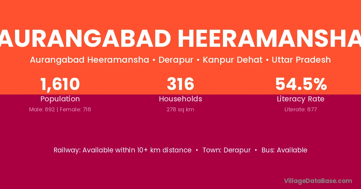 Aurangabad Heeramansha village has a total population of 1,610 people, of which 892 are males and 718 are females.