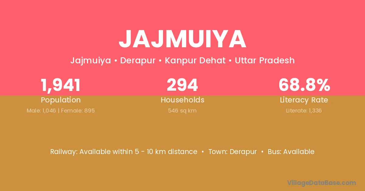 Jajmuiya village has a total population of 1,941 people, of which 1,046 are males and 895 are females.