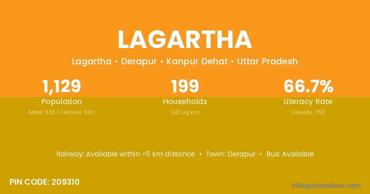 Lagartha village is located in the Derapur Tehsil of the Kanpur Dehat district in Uttar Pradesh .