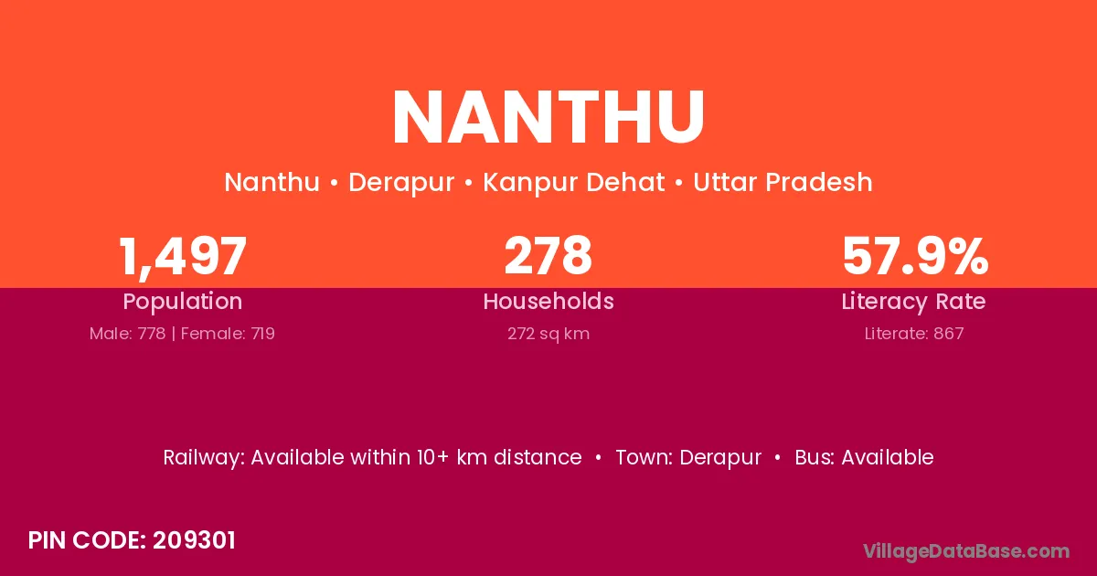 Nanthu village has a total population of 1,497 people, of which 778 are males and 719 are females.