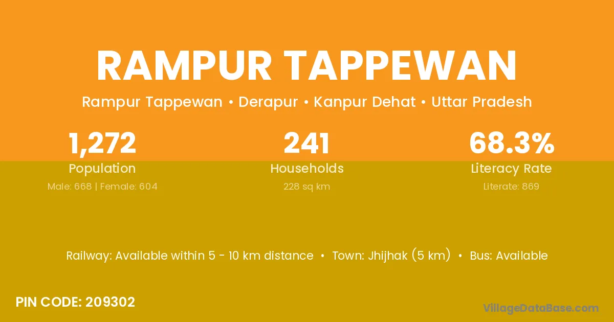 Jhijhak (5 km) is the nearest town to Rampur Tappewan village for major economic activities and is located approximately 5 km away.