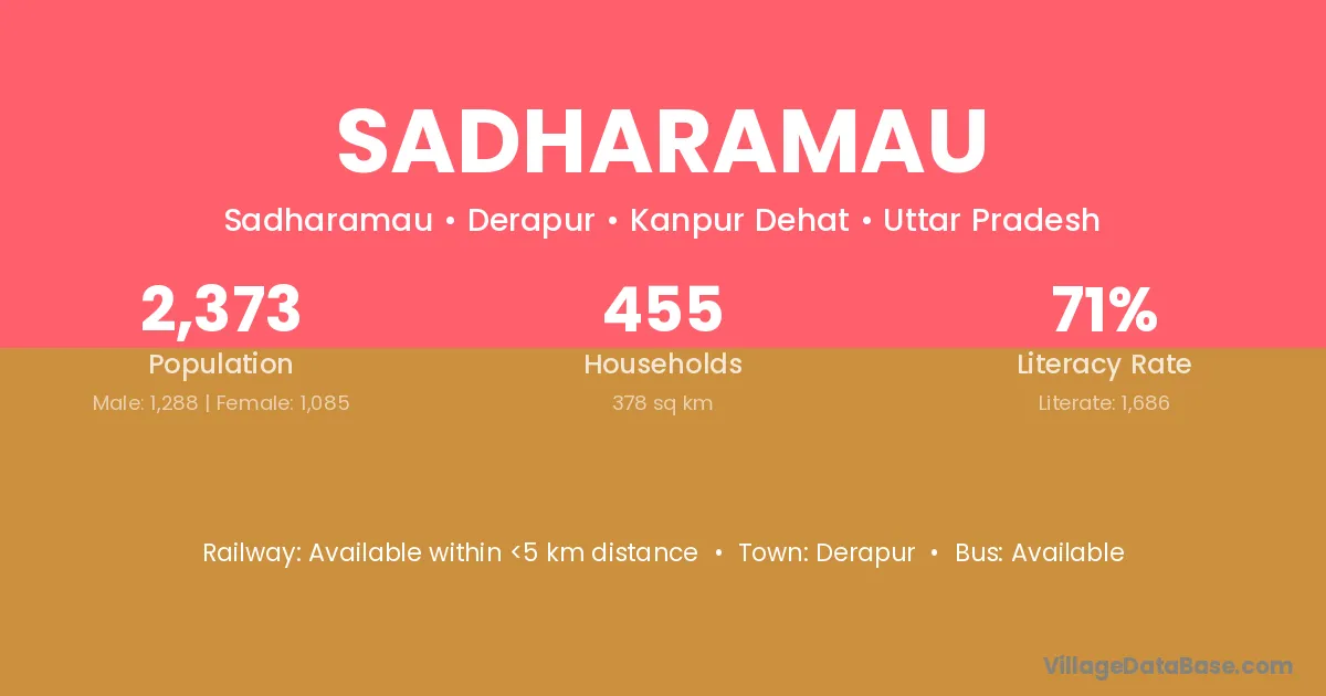 Sadharamau village is located in the Derapur Tehsil of the Kanpur Dehat district in Uttar Pradesh .