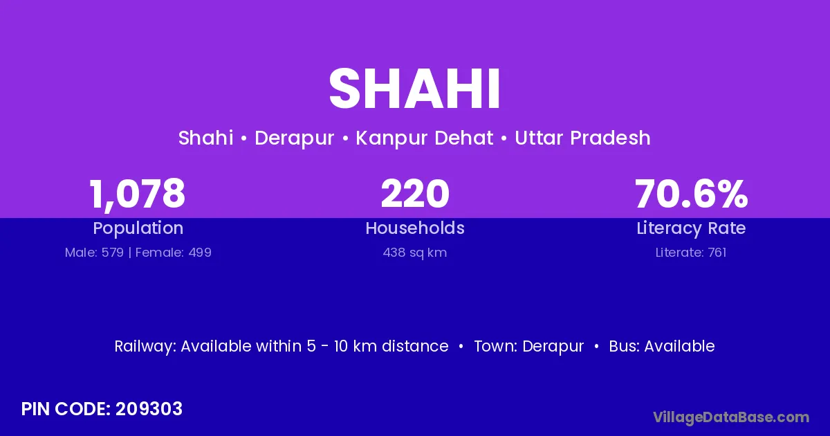 According to Census 2011 information, the village code of Shahi village is 209303.