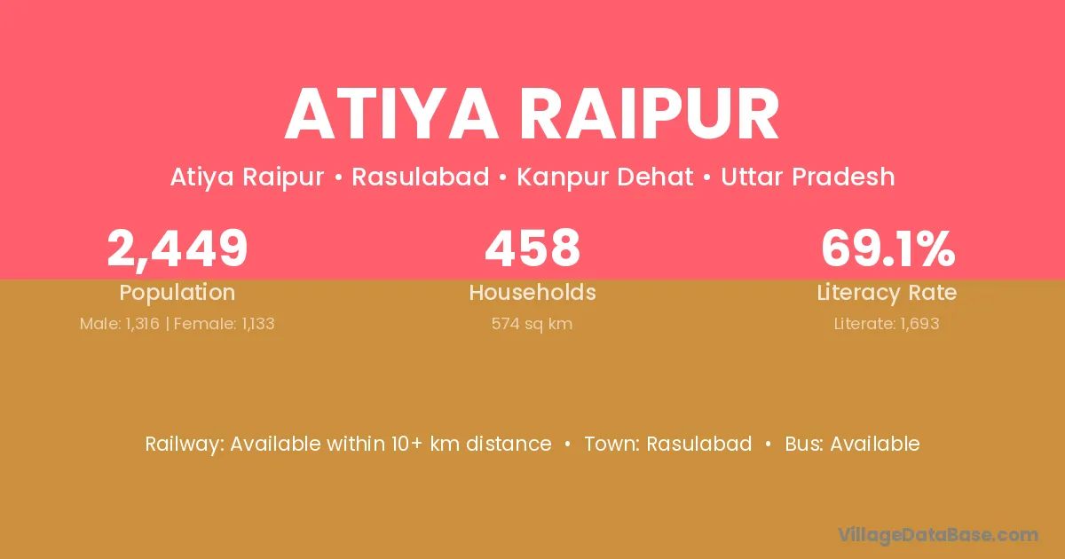 Rasulabad is the nearest town to Atiya Raipur village for major economic activities