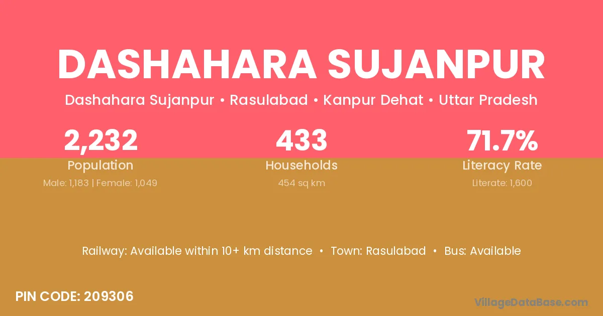 Rasulabad is the nearest town to Dashahara Sujanpur village for major economic activities