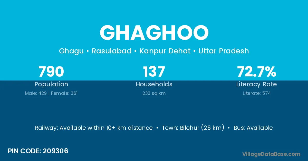 Bilohur (26 km) is the nearest town to Ghaghoo village for major economic activities and is located approximately 26 km away.