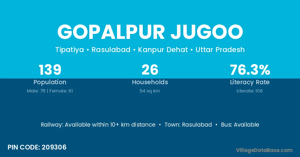 Rasulabad is the nearest town to Gopalpur Jugoo village for major economic activities