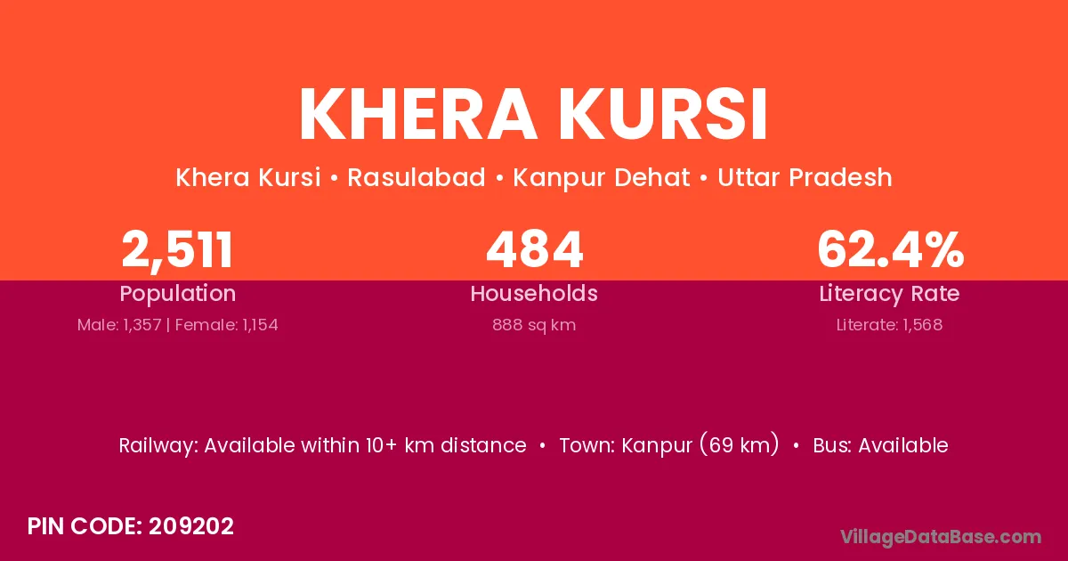 Kanpur (69 km) is the nearest town to Khera Kursi village for major economic activities and is located approximately 69 km away.