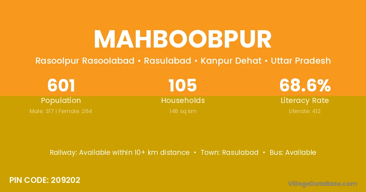 Rasulabad is the nearest town to Mahboobpur village for major economic activities