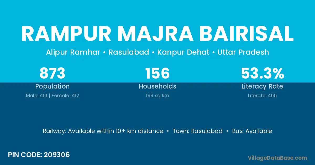 Rampur Majra Bairisal village has a total population of 873 people, of which 461 are males and 412 are females.